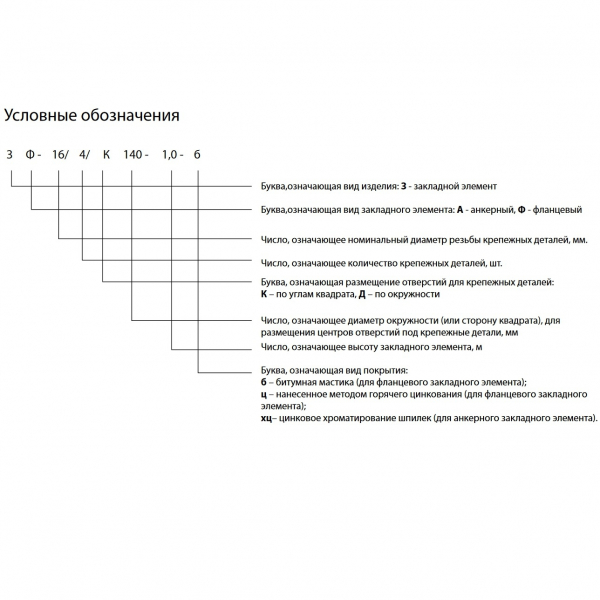 Фланцевые закладные детали изготавливаются из трубного проката по ГОСТ 10704-81. Материал выбирается в зависимости от климатического района эксплуатации с учетом коэффициента запаса прочности в соответствии с СП 16.13330.2011. В зависимости от типа воспринимаемой нагрузки как правило ЗДФ исполняются с квадратными фланцами с четырьмя отверстиями или с круглыми фланцами с количеством отверстий более четырех. ЗДФ стандартно имеют сквозное окно для подвода кабеля и заведения его в тело опоры. Наличие дополнительных отверстий или их отсутствие необходимо оговаривать отдельно при заказе.
